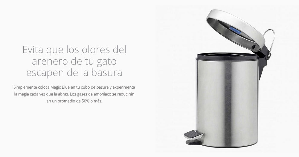 - Magic Blue es una almohadilla filtrante exclusiva no tóxica para bandejas sanitarias que absorbe y retiene hasta el 80% de amoniaco, que es el componente más peligroso e irritante de la orina de gato.