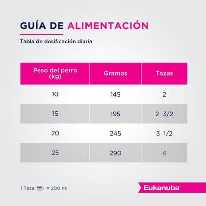 Realiza un cambio gradual en 7 días. Ajusta la porción según edad, tamaño y nivel de actividad.