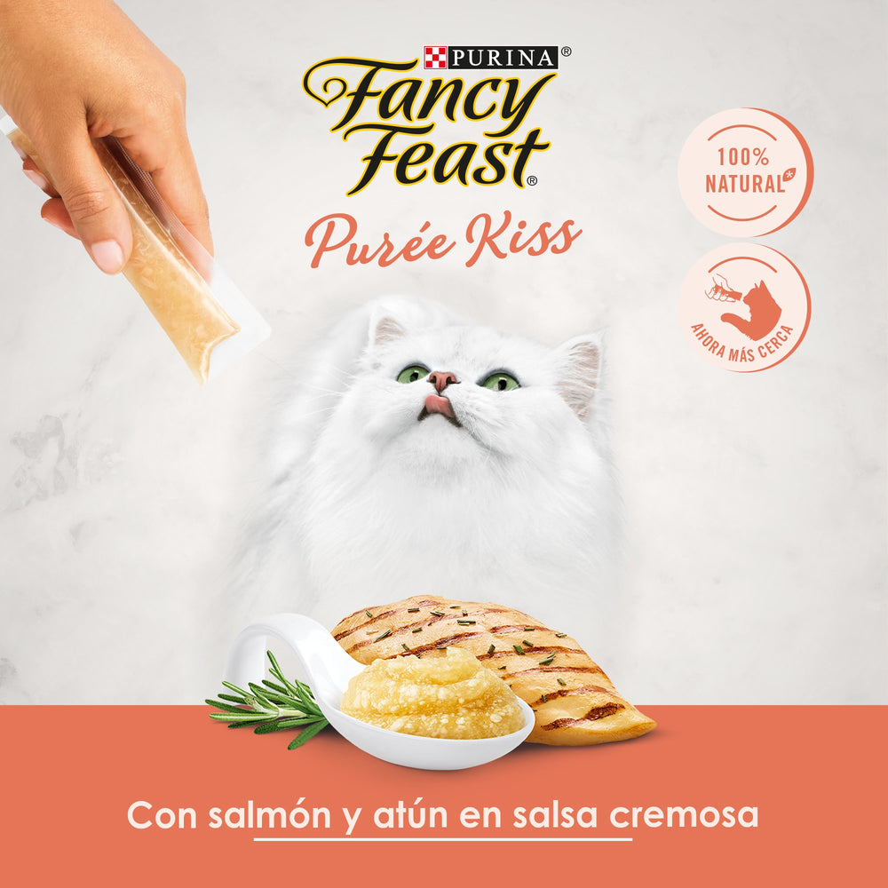 fancy feast kiss pure con salmón y atún en salsa cremosa 40gr descripción a tu gato le encantará este sabroso snack con salmón y atún seleccionados a mano y otros