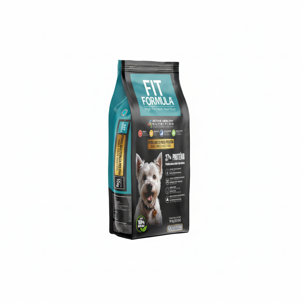 FIT FORMULA® Adulto Raza Pequeña ayuda a tu perro a aprovechar mejor cada comida gracias a su fórmula digestible con prebióticos. Las proteínas de alta calidad favorecen el mantenimiento muscular, mientras los ácidos grasos esenciales DHA – Omega 3 promueven piel sana y pelaje brillante. Incluye hexametafosfato sódico para contribuir al control de sarro y Extracto de Yucca schidigera para reducir olores de forma natural 🐕.