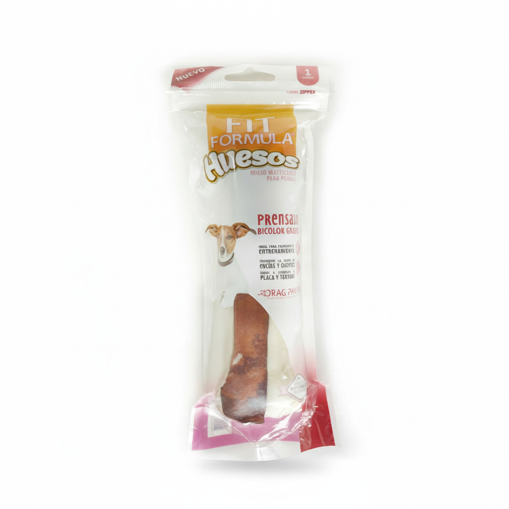 Fit Formula Hueso Snack Bicolor Grande Descripción Se utiliza como premio para su perro manteniéndolo entretenido y ayudando en el cuidado dental. Hueso para perros ideal para promover el entrenamiento. Promueve la salud de encias y dientes. Ayuda a Combatir la Placa y Tartaro