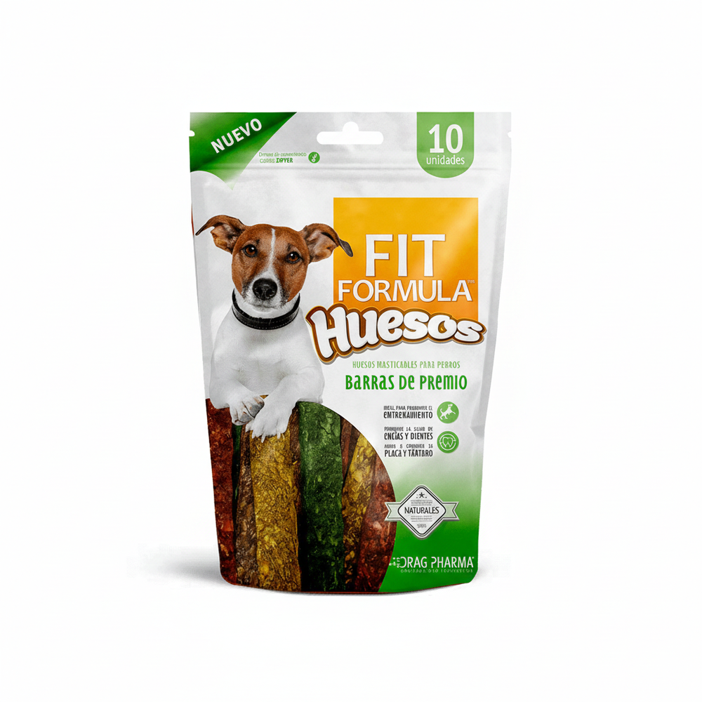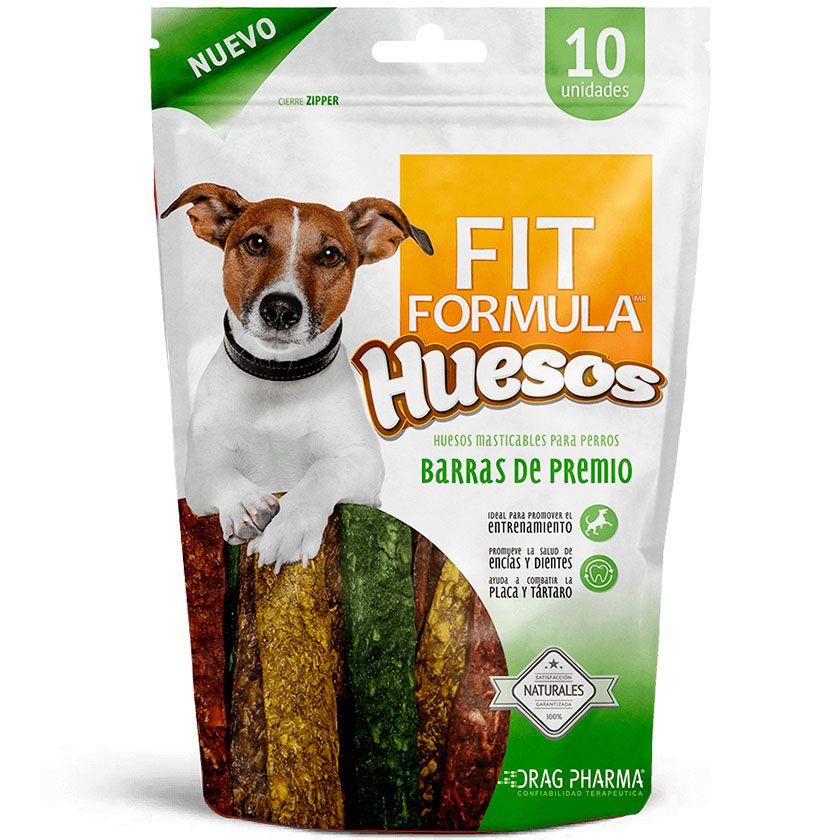 fit formula huesos barras de premio entretiene y mantiene limpio los dientes de tu perro. descripción barras de premio diseñadas para premiar y satisfacer las necesidades de mascar de los perros, ayudando a mejorar la higiene de los dientes del animal. beneficios - golosina de alta calidad a base de cuero de res. - ayuda a mantener dientes limpios y encías sanas. - entretiene y evita que su mascota muerda objetos no deseados (zapatos, ropa, muebles, etc) - recomendado por médicos veterinarios. indicaciones: - prohibido su uso en la alimentacion de rumienates. - conservar en lugar fresco, seco y al abrigo de la luz a no más de 30ºc. advertencias: - mantener fuera del alcance de los niños. formulado con cuero de res.