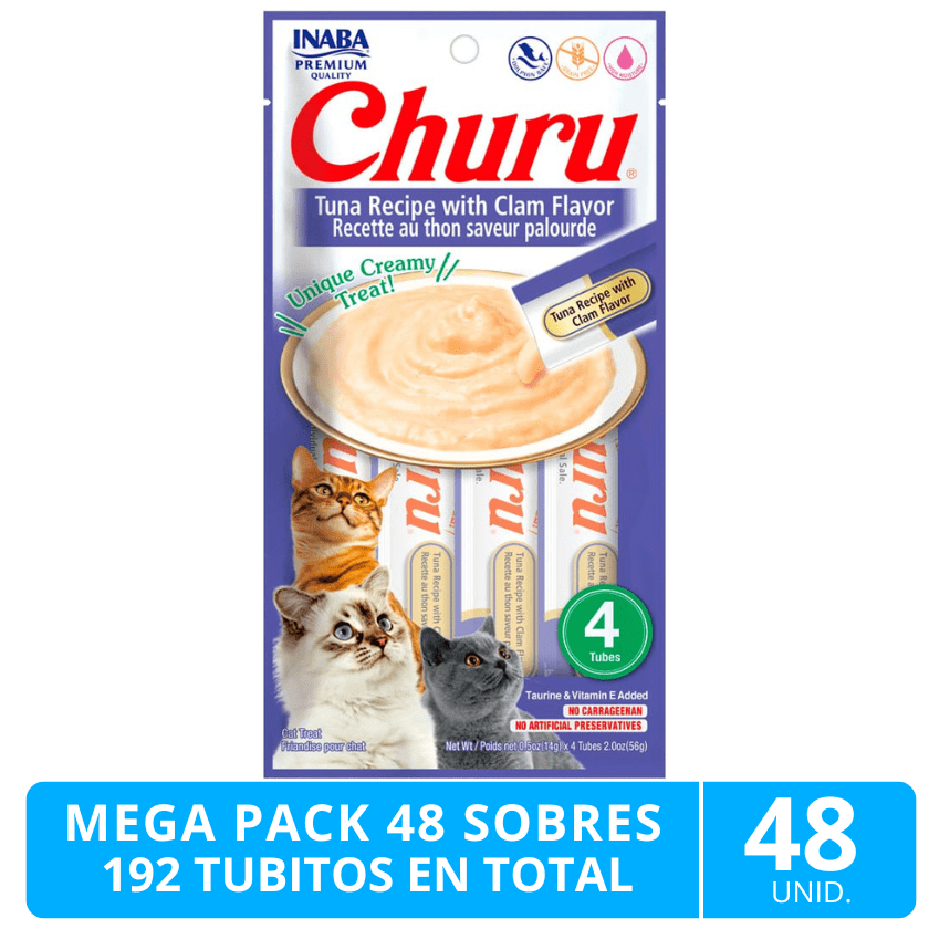 Mega Pack 48 Sobres Inaba Ciao Churu Atún Con Almeja (192 Tubitos) 🐾