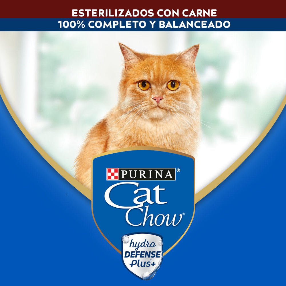 Purina Cat Chow Hydro Castrados Sabor Carne. Descripción Alimento húmedo 100% completo y balanceado para gatos adultos esterilizados/castrados de todos los tamaños CAT CHOW® Carne en formato sobre. Con Defense Hydro®: Equilibrio de nutrientes y agua. Ayuda a proteger la salud y contribuye a un tracto urinario saludable. ¡Protección a cada comida! Favorece la ingestión de agua; Antioxidantes que ayudan a proteger la salud del gato; Sin adición de conservantes artificiales.