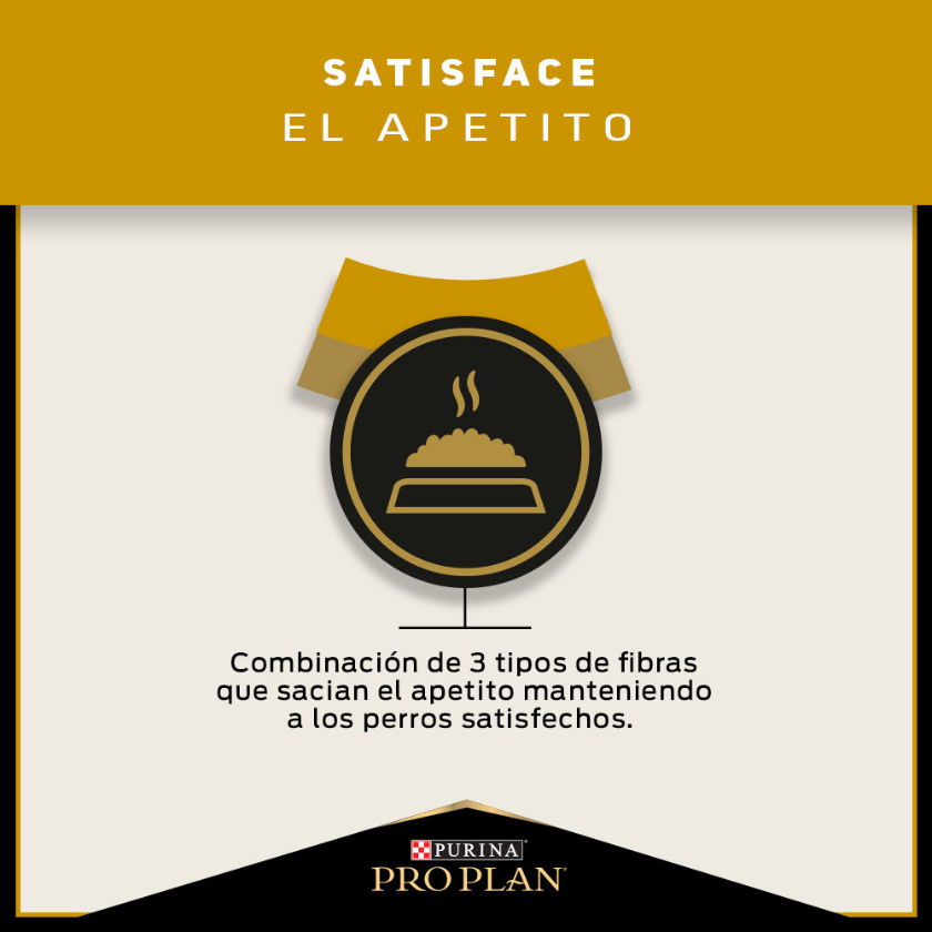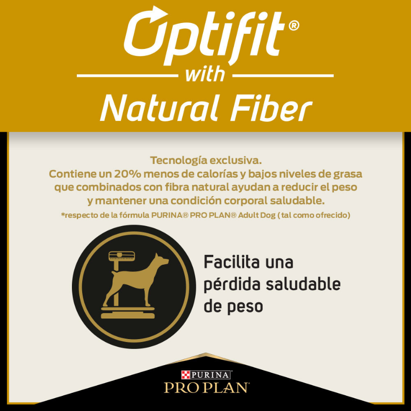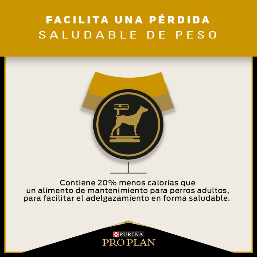 purina pro plan reduced calorie con optifit para perros adultos con problemas de sobre peso. *alimento formulado para reducir y mantener el peso en perros adultos. descripción desarrollado por veterinarios y nutricionistas, purina® pro plan® reduced calorie con optifit® es la primera y única fórmula de reducción de peso que incluye isoflavonas que te ayuda a reducir y mantener el peso de tu perro en forma saludable y a cuidar su bienestar en el largo plazo. beneficios promueve un peso corporal ideal formulado con isoflavonas, antioxidantes naturales, cuya acción está comprobada que reduce la grasa acumulada por medio de la estimulación natural del metabolismo, y mantiene un peso saludable en el largo plazo. facilita la pérdida de peso saludable contiene 20% menos calorías, que un alimento de mantenimiento para perros adultos, y un alto contenido de proteínas para ayudar a mantener la masa muscular mientras se reduce la grasa corporal asegurando una nutrición optima. protege su salud ahora y siempre formulado con antioxidantes naturales que ayudan a reducir el stress oxidativo relacionado con el sobrepeso promoviendo una vida larga y saludable. óptima absorción de nutrientes proteínas altamente digeribles de fuentes naturales, aminoácidos clave como la glutamina, y fibras de calidad que se combinan para promover la digestión y la absorción óptima de nutrientes. favorece una piel saludable y un pelaje lustroso con proteínas de alta calidad, ácidos grasos 3 y 6, vitaminas y minerales clave como cobre y selenio ayudan a mantener una piel sana y un pelaje brillante. sistema inmunológico nutrición completa con proteínas de alta calidad para aumentar los anticuerpos y enfrentar mejor las amenazas externas. además, contiene altos niveles de antioxidantes vitales como vitamina c y e y selenio para proteger a las células de los radicales libres, y ácidos grasos omega para balancear la respuesta inmunológica. satisface el apetito con un balance de fuentes naturales de tres tipos de fibras – salvado de maíz, fibra de avena y celulosa – para saciar el apetito.