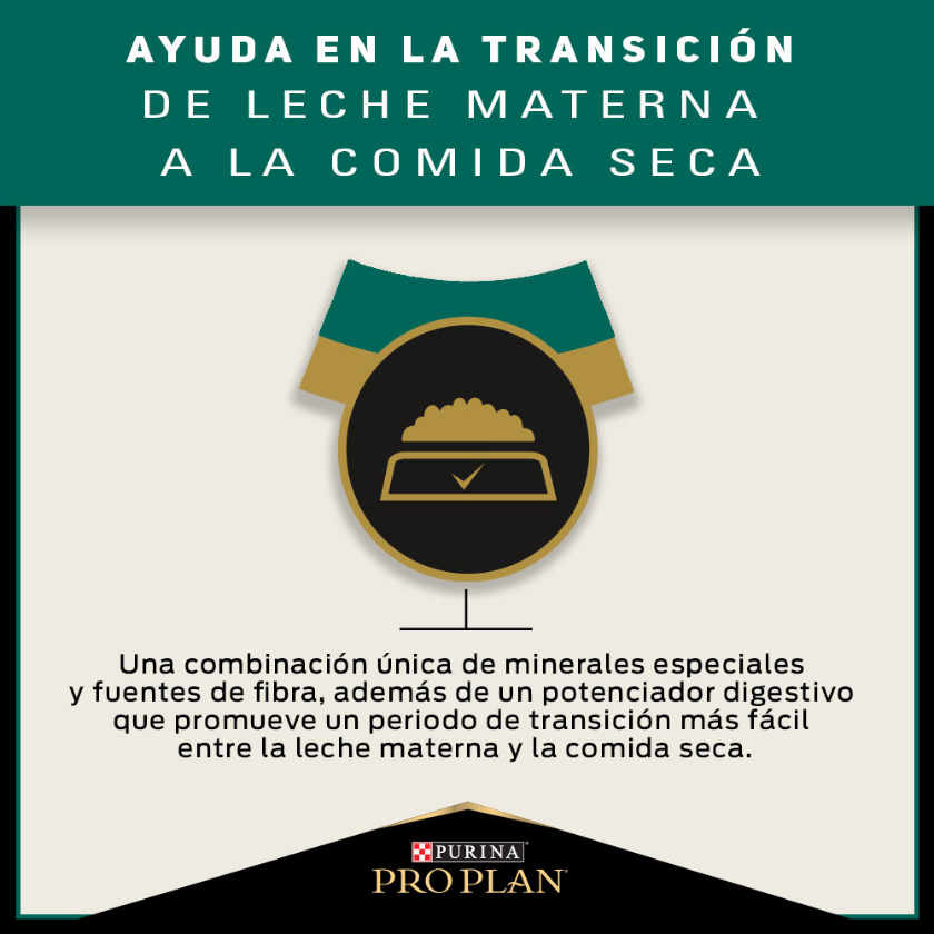 ingrediente principal, además de vitaminas y minerales esenciales, pro plan® puppy complete ofrece una óptima nutrición para cachorros en crecimiento. fortificado con optistart®, elimina la “brecha inmunológica” que experimentan los cachorros tras el destete, reforzando y nutriendo los delicados sistemas de protección para que crezcan sanos y fuertes. beneficios protege el sistema digestivo inmaduro provee proteínas de calidad altamente digeribles y otros bioactivos provenientes del calostro que promueven la estabilidad de la microflora intestinal de los cachorros, protegiéndolos de problemas digestivos como la diarrea, y permitiendo una mejor absorción de nutrientes para un desarrollo óptimo. refuerza el sistema inmunológico formulado con anticuerpos naturales provenientes del calostro y proteínas de la carne fresca de pollo, altamente digeribles para estimular el desarrollo de un sistema inmunológico fuerte, protege a los cachorros contra patógenos y enfermedades. promueve una piel saludable y un pelaje lustroso con proteínas de alta calidad, ácidos grasos omega 3 y 6, vitaminas y minerales clave como cobre y selenio ayudan a desarrollar una piel sana y un pelaje brillante – primera barrera de protección contra amenazas externas. desarrollo del cerebro y de la visión el dha (ácido docosahexaenoico) y epa (ácido eicasapentaenoico) del aceite de pescado estimulan el desarrollo del cerebro y la maduración de la visión. óptimo crecimiento proporción óptima de proteína y grasa que promueve un crecimiento saludable al desarrollar músculos fuertes y magros (sin excesos de grasa corporal).